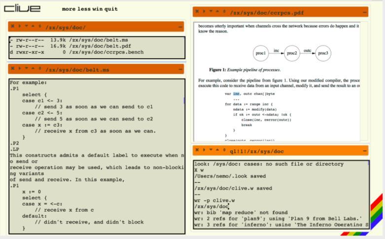 I worked with the team that developed UNIX and contributed to Plan 9 from Bell Labs and Inferno. Jointly with Bell Labs we developed the NIX operating system, several window systems, and network file protocols. Most Plan 9 related software is kept at 9legacy.org.
