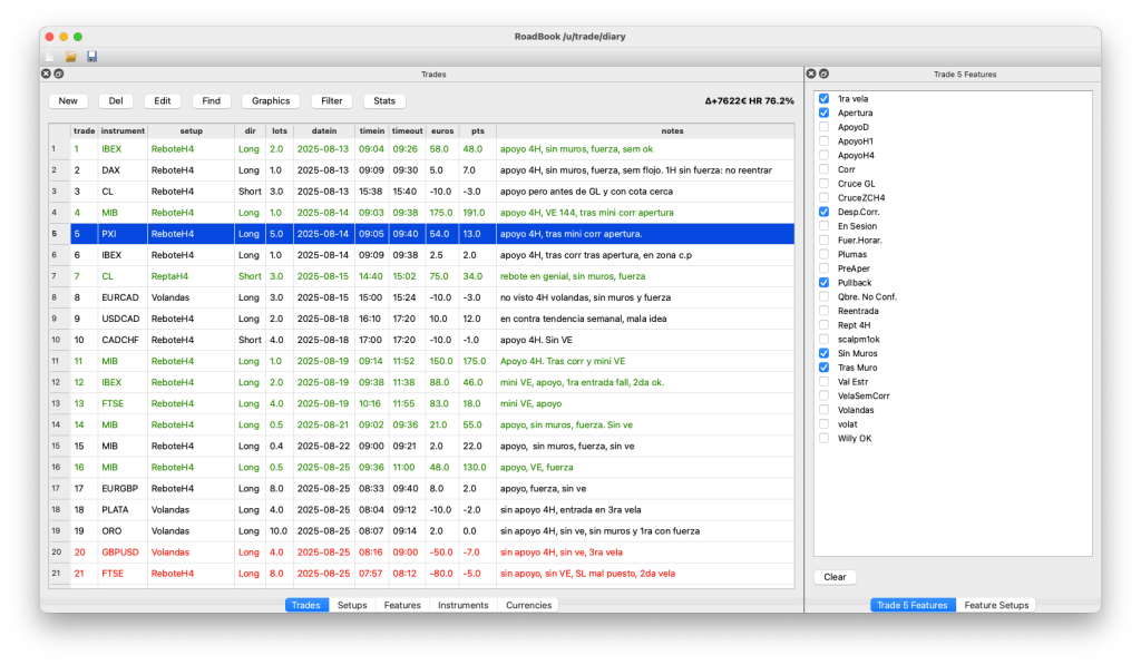 This is a just-born trading roadbook that can filter trades based on setups and features to gather stats useful to learn something. Still in alpha.